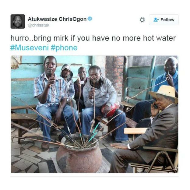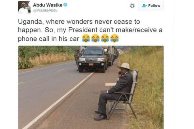 Baada ya kuchapishwa kwa picha ya rais wa Uganda Yoweri Museveni, akipokea simu kando ya barabara.